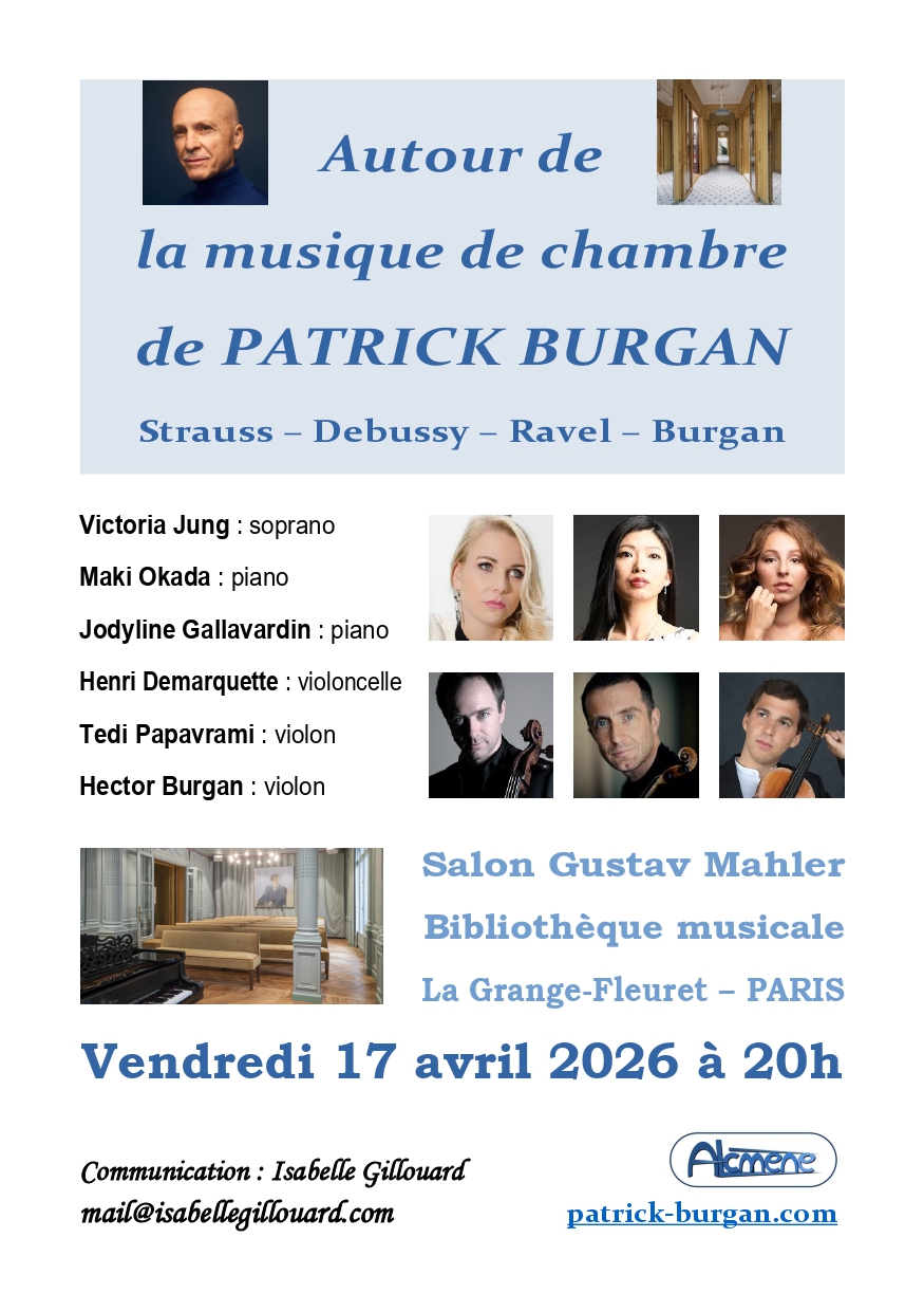 Agrégé de musicologie, premiers prix de composition, d’orchestration et d’analyse du CNSM de Paris (classes d’Ivo Malec, Gérard Grisey et Betsy Jolas), plusieurs fois lauréat de l’Institut de France – dont le Prix Pierre Cardin en 1995 – Patrick Burgan fut pensionnaire de la Casa de Velasquez à Madrid de 1992 à 1994.